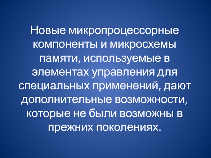 Слайд 24Новые микропроцессорные компоненты и микросхемы памяти, используемые в элементах управления