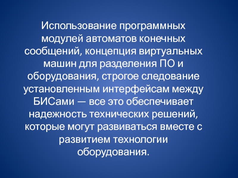 разделения ПО и оборудования, строгое следование установленным интерфейсам между БИСами