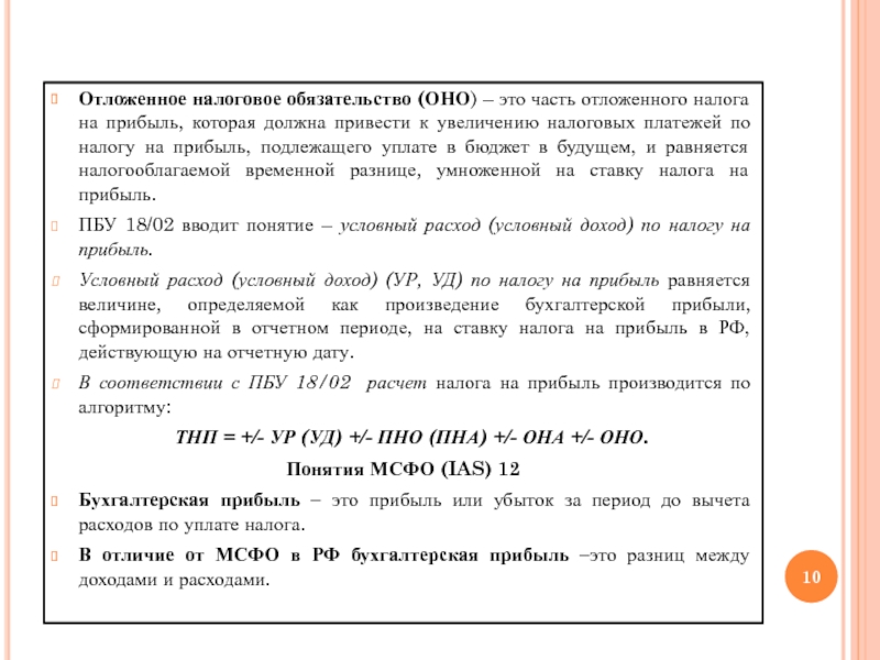 Слайд 10Отложенное налоговое обязательство (ОНО) – это часть отложенного налога на