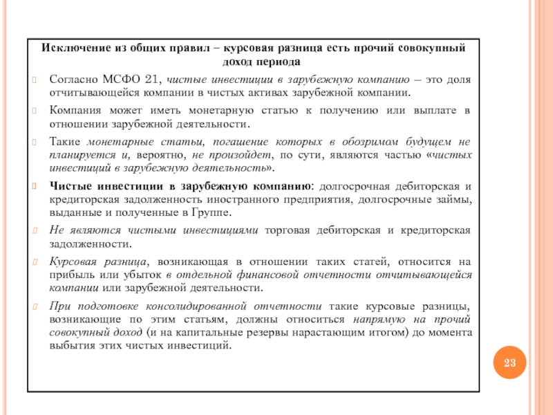 Слайд 23Исключение из общих правил – курсовая разница есть прочий совокупный