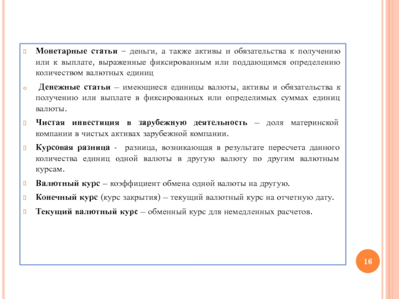 Слайд 25курсовая разница по монетарным статьям признается в отчете о прибылях
