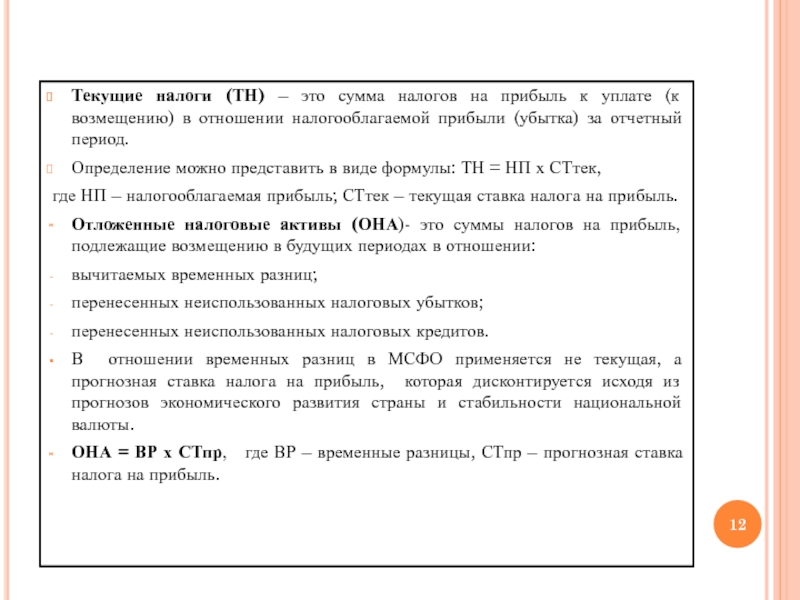 Слайд 12Текущие налоги (ТН) – это сумма налогов на прибыль к