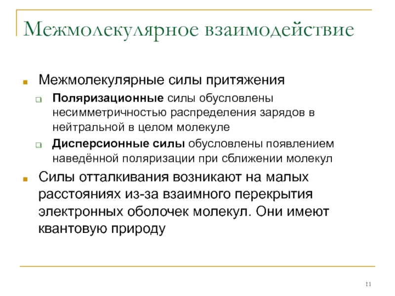 Слайд 11Межмолекулярное взаимодействие