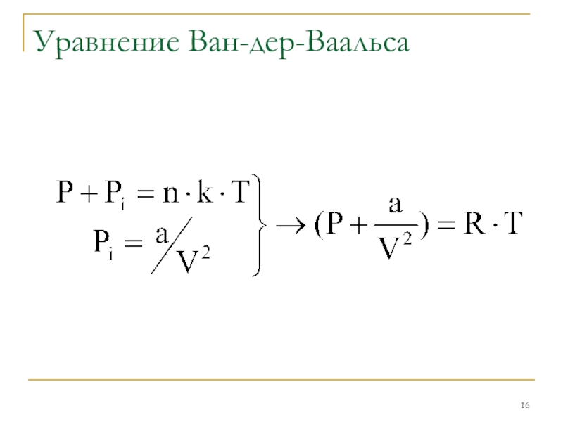 Слайд 14Уравнение Ван-дер-Ваальса
