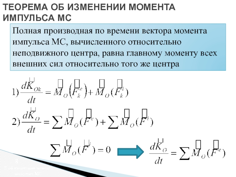 ТЕОРЕМА ОБ ИЗМЕНЕНИИ МОМЕНТА ИМПУЛЬСА МС