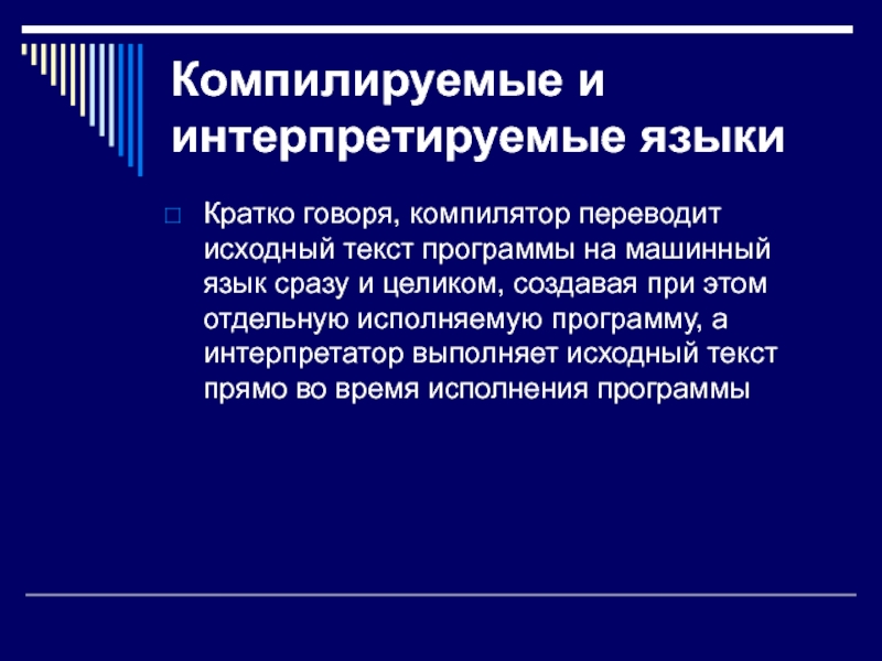 Слайд 8Компилируемые и интерпретируемые языки