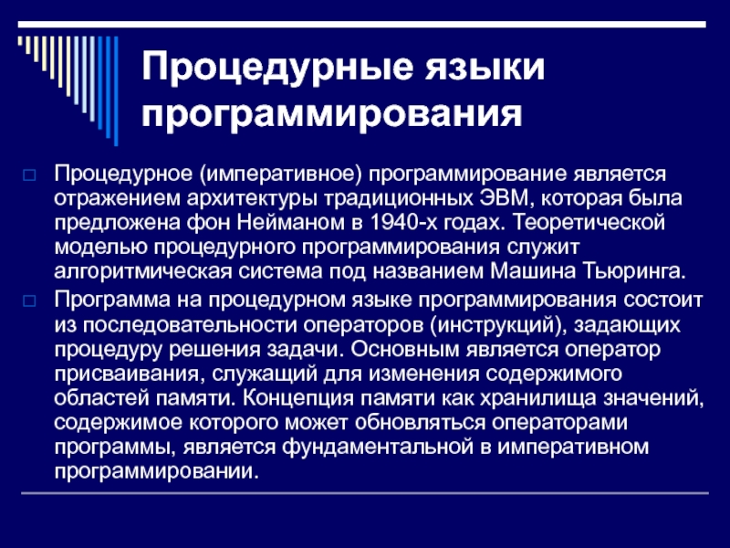 Слайд 9Процедурные языки программирования