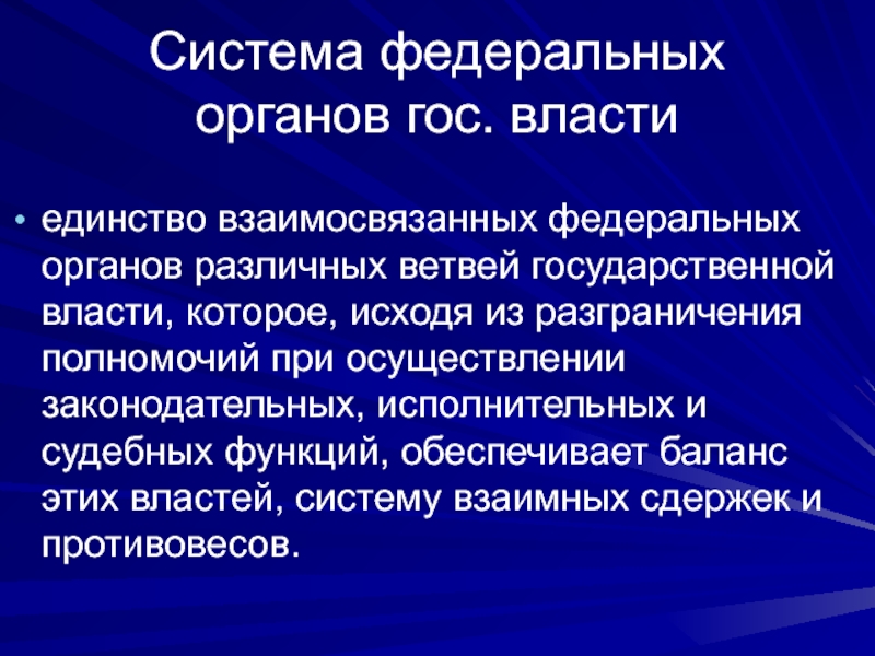исполнительных и судебных функций, обеспечивает баланс этих властей, систему взаимных сдержек и противовесов.