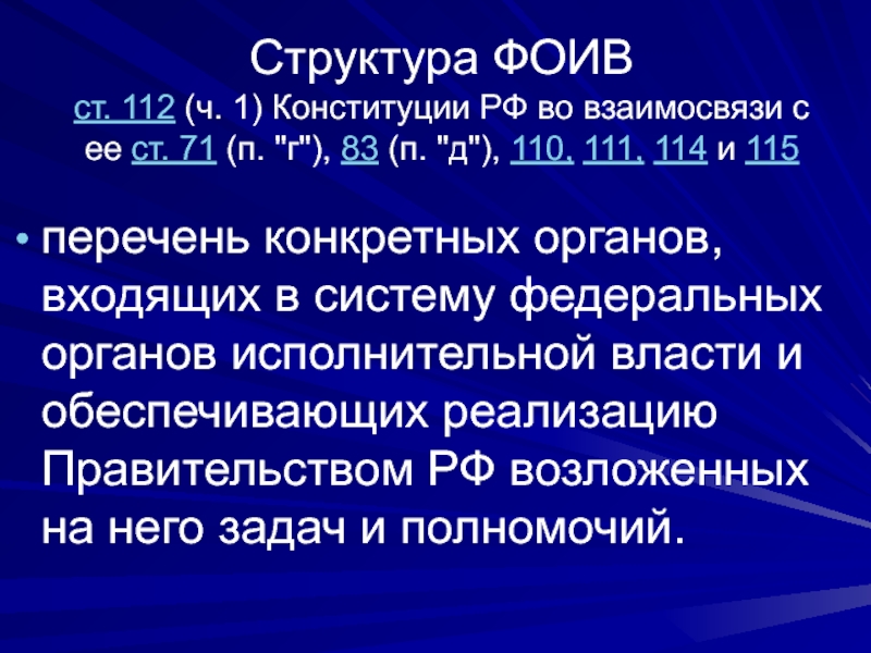 перечень конкретных органов, входящих в систему федеральных органов исполнительной власти и обеспечивающих реализацию Правительством РФ возложенных на него задач и полномочий.