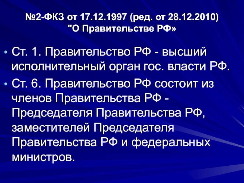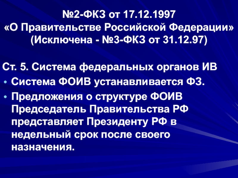 «О Правительстве Российской Федерации» (Исключена - №3-ФКЗ от