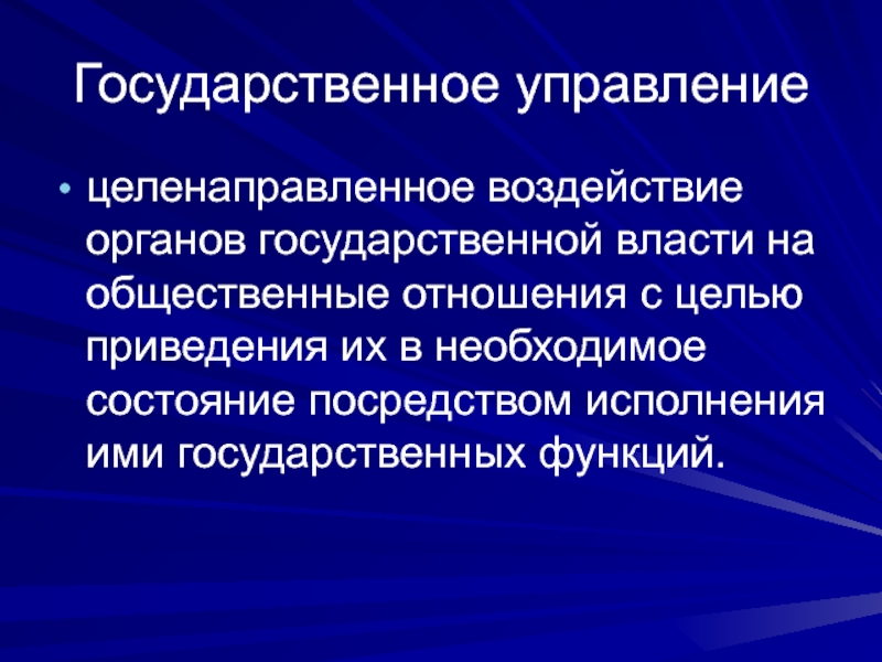 целенаправленное воздействие органов государственной власти на общественные отношения с