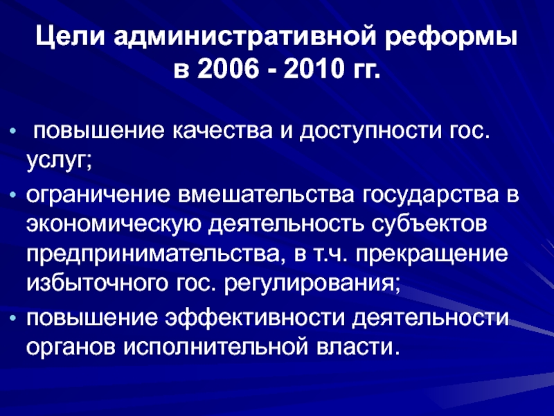 Слайд 33Цели административной реформы в 2006 - 2010 гг.