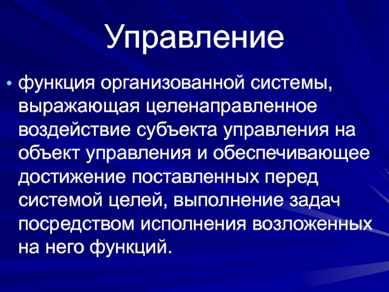 функция организованной системы, выражающая целенаправленное воздействие субъекта управления на объект