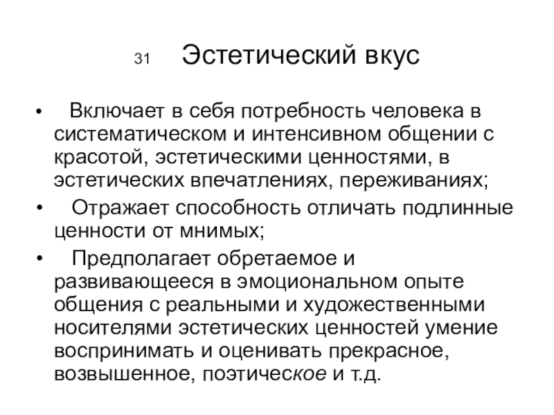 Слайд 3131 Эстетический вкус