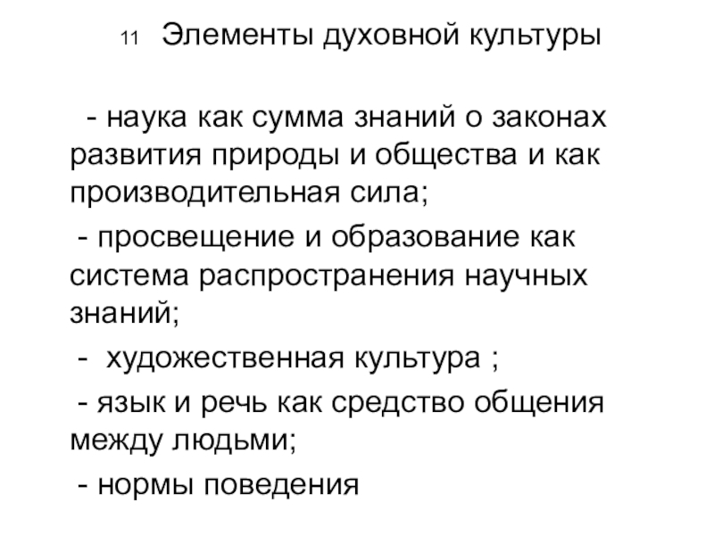 Слайд 11 11 Элементы духовной культуры