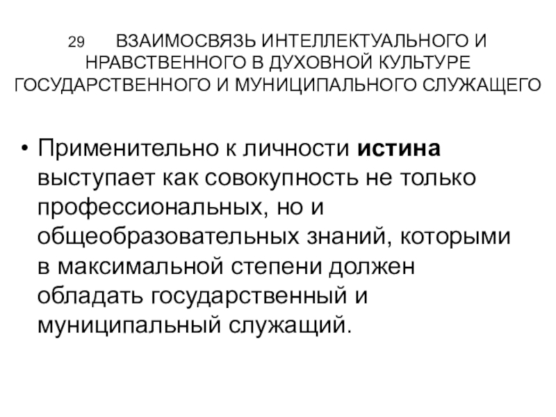 Слайд 2929 ВЗАИМОСВЯЗЬ ИНТЕЛЛЕКТУАЛЬНОГО И НРАВСТВЕННОГО В ДУХОВНОЙ КУЛЬТУРЕ