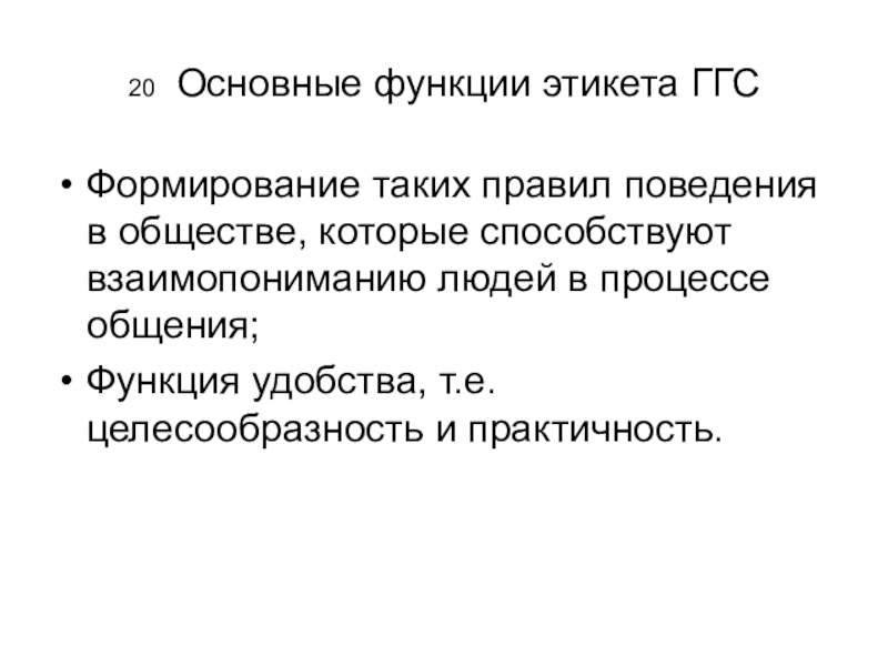 Слайд 2020 Основные функции этикета ГГС