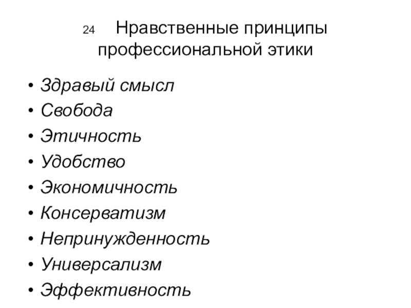 Слайд 2424 Нравственные принципы профессиональной этики