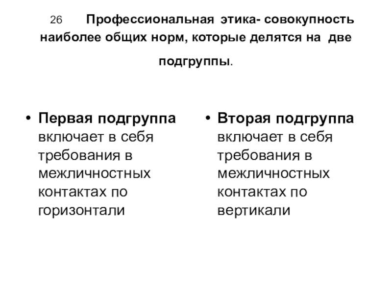 Слайд 26 26 Профессиональная этика- совокупность наиболее общих норм, которые