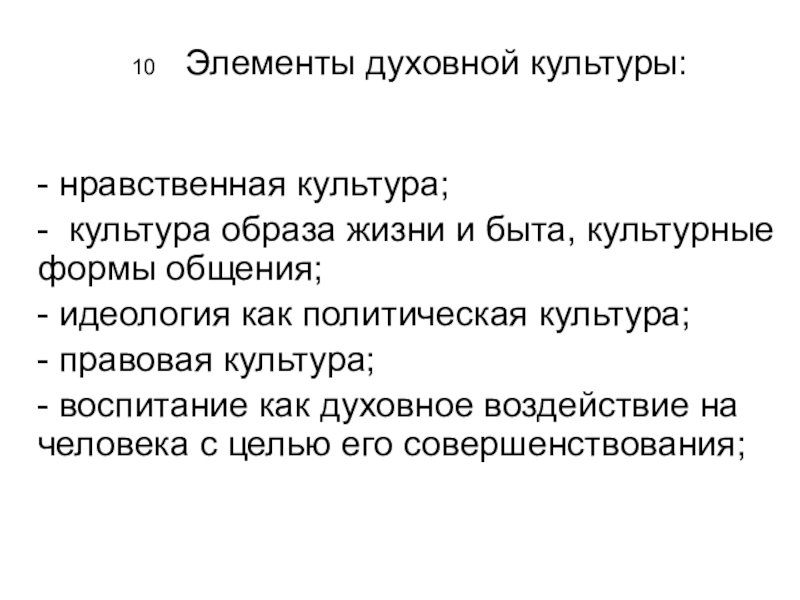 Слайд 10 10 Элементы духовной культуры: