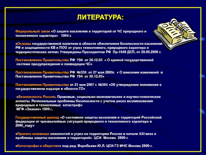 Федеральный Закон «О защите населения и территорий от чрезвычайных ситуаций природного и техногенного характера» № 68 -ФЗот 21 декабря 1994 г.