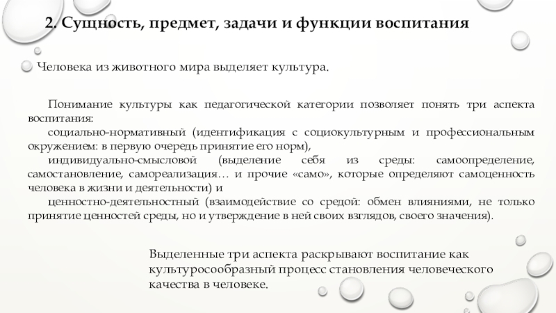 1) принцип ориентации на ценности и ценностные отношения, предписывающий педагогу обнаруживать за событиями, действиями, словами, поступками, а также за предметами и вещами человеческие отношения и ценности на уровне современной культуры;