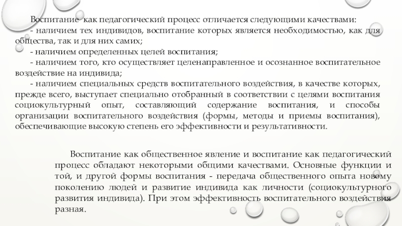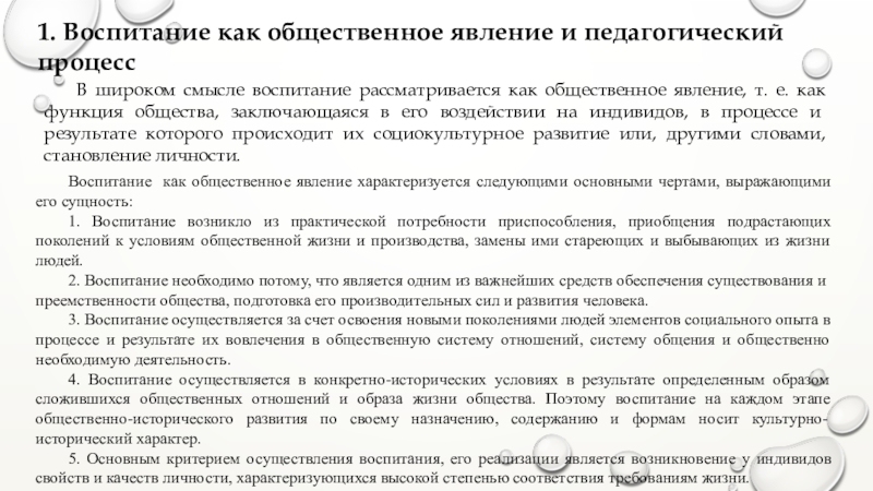 характеристики взаимоотношений между субъектами воспитания, их отношений к окружающему миру.