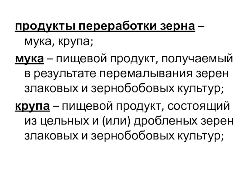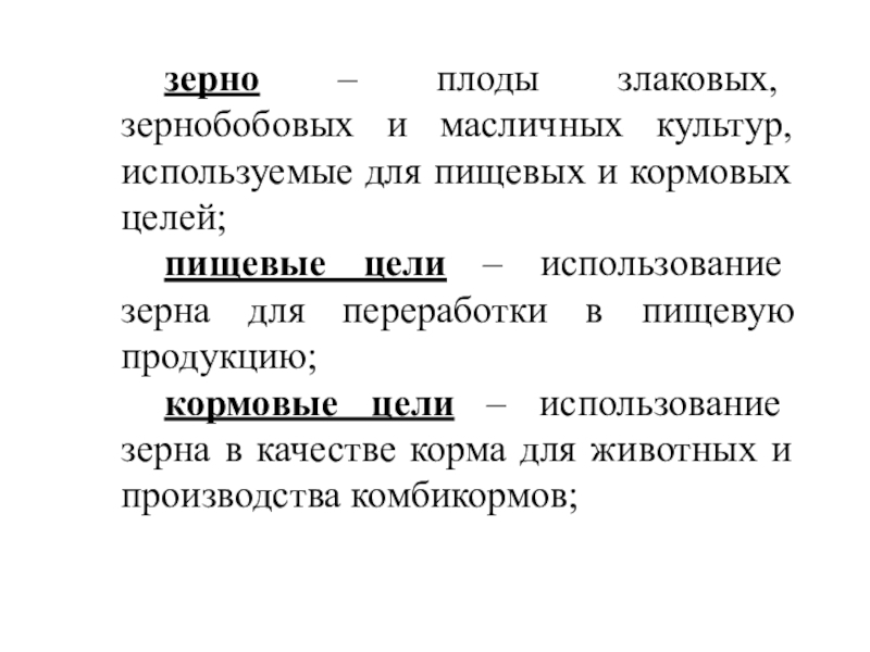 Слайд 6зерно – плоды злаковых, зернобобовых и масличных культур, используемые для