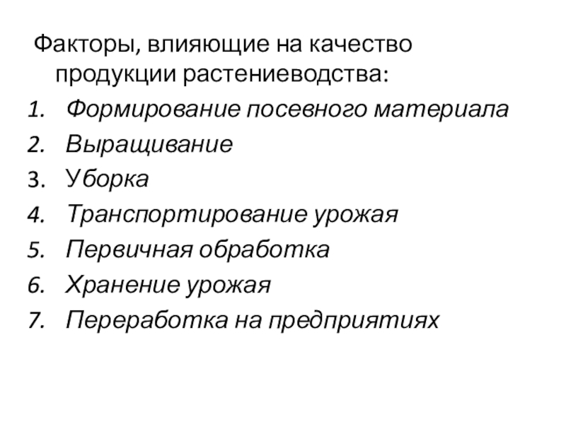 Слайд 12Факторы, влияющие на качество продукции растениеводства: