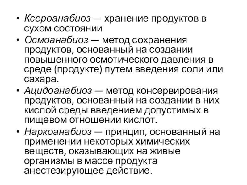 4) ацидоанабиоз (создание определенной кислотности среды);