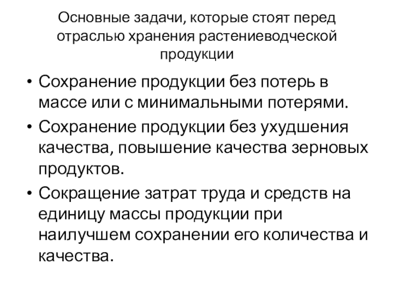 Слайд 5Основные задачи, которые стоят перед отраслью хранения растениеводческой продукции