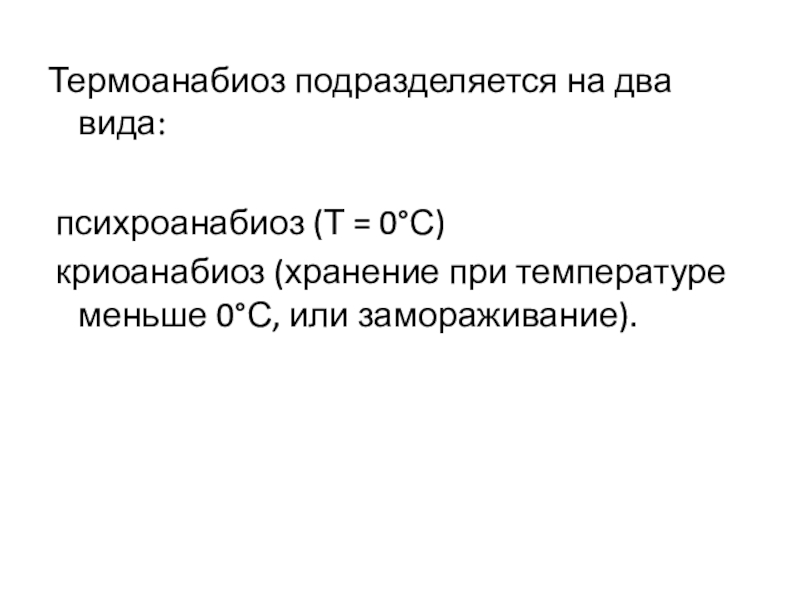 Слайд 16Термоанабиоз подразделяется на два вида: