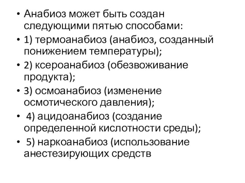 Слайд 15Анабиоз может быть создан следующими пятью способами: