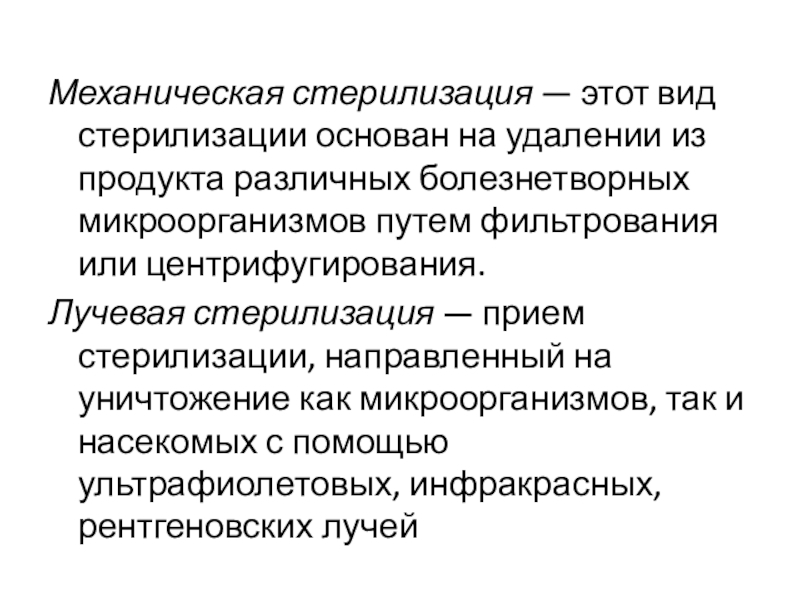 Слайд 22Механическая стерилизация — этот вид стерилизации основан на удалении из