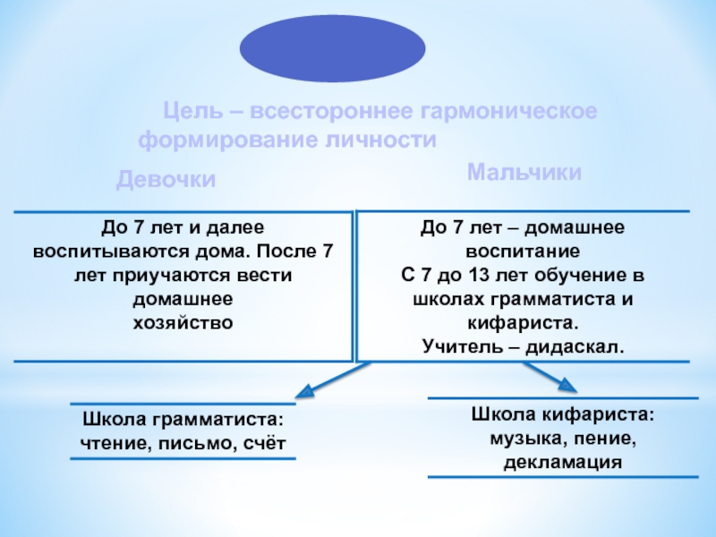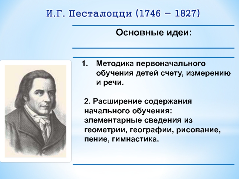 начального обучения: элементарные сведения из геометрии, географии, рисование, пение, гимнастика.