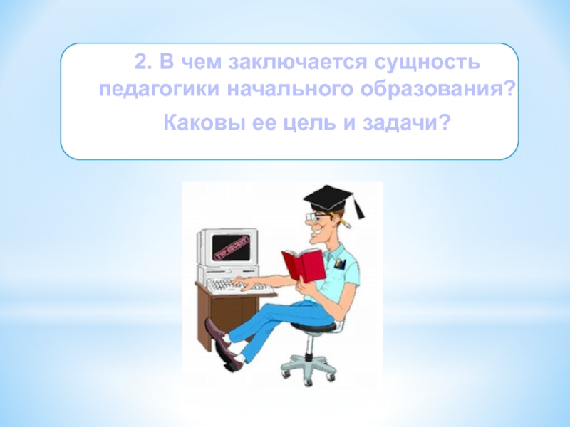 Слайд 522. В чем заключается сущность педагогики начального образования?