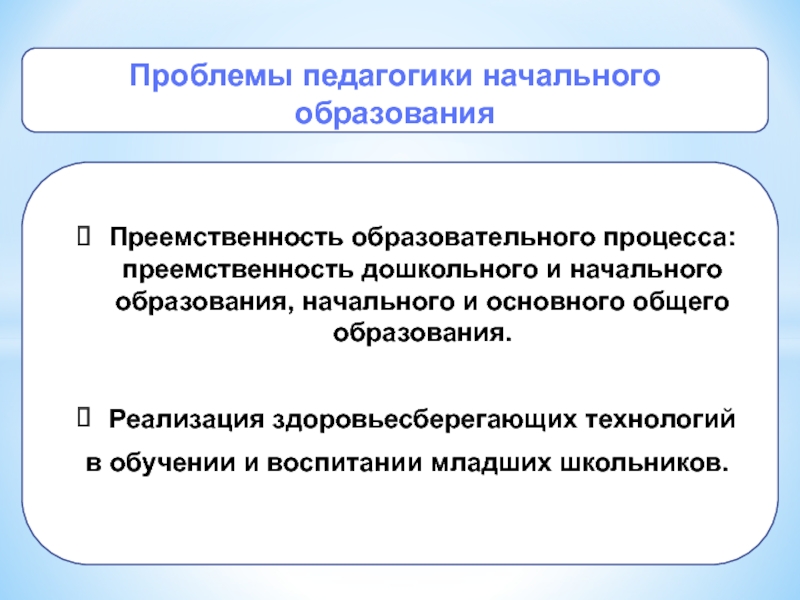 Преемственность образовательного процесса: преемственность дошкольного и начального образования, начального и