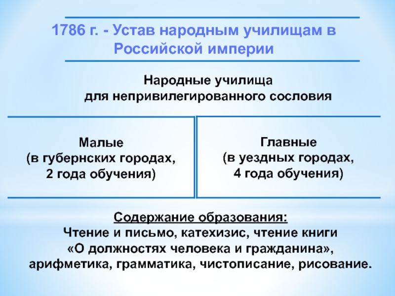 Слайд 301786 г. - Устав народным училищам в Российской империи