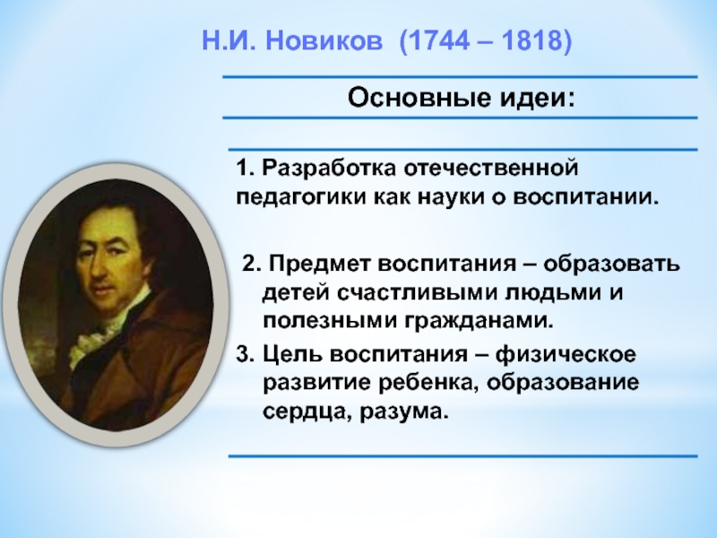«О должностях человека и гражданина», арифметика, грамматика, чистописание, рисование.