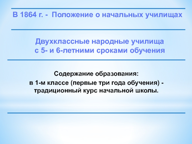 Слайд 36В 1864 г. - Положение о начальных училищах