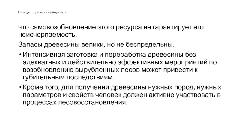 древесины без адекватных и действительно эффективных мероприятий по возобновлению вырубленных лесов может привести к губительным последствиям.