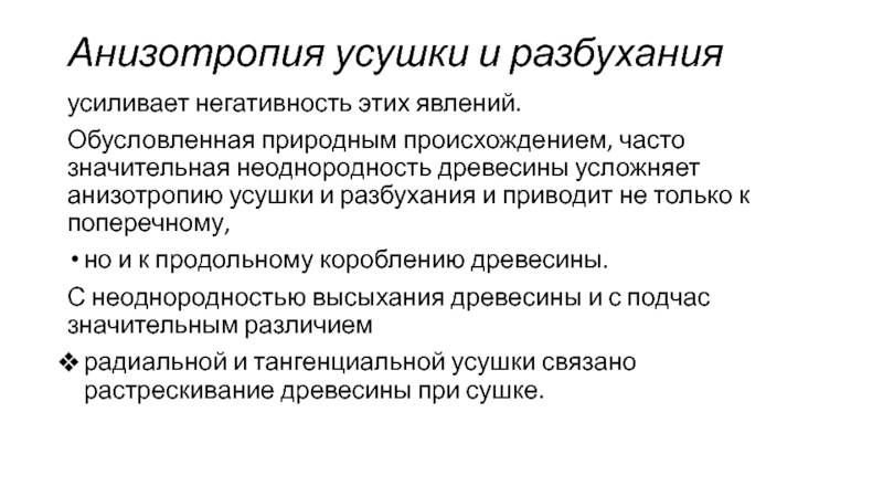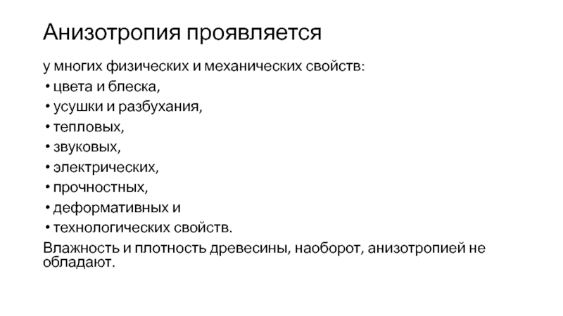 Влажность и плотность древесины, наоборот, анизотропией не обладают.