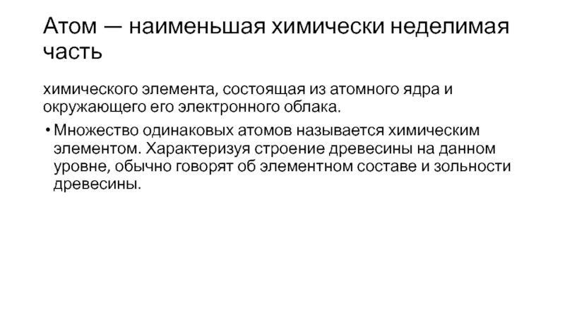 химическим элементом. Характеризуя строение древесины на данном уровне, обычно говорят об элементном составе и зольности древесины.