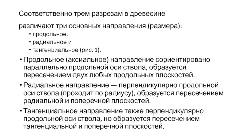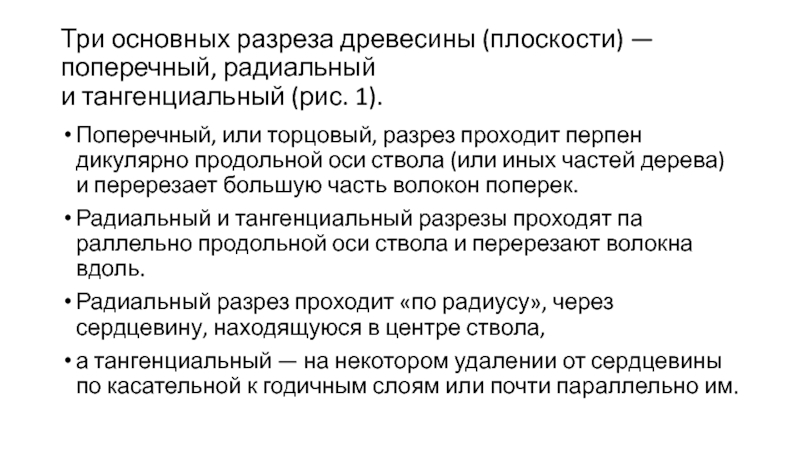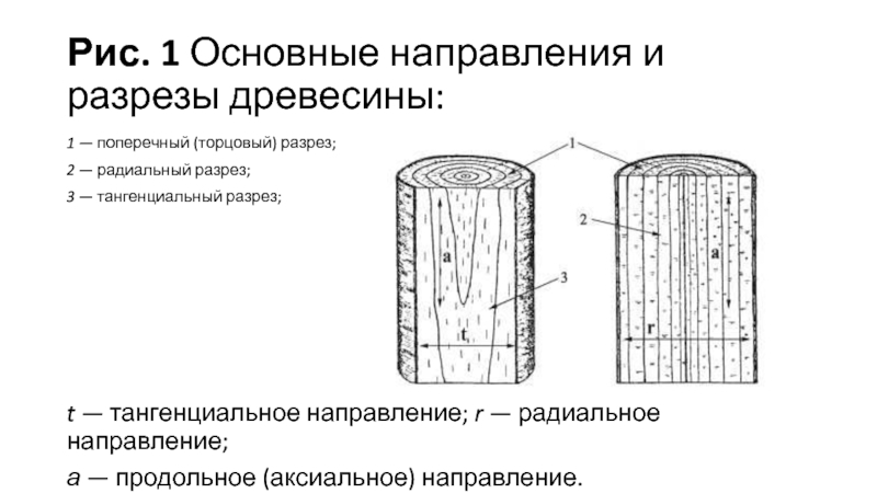 Слайд 47Рис. 1 Основные направления и разрезы древесины: