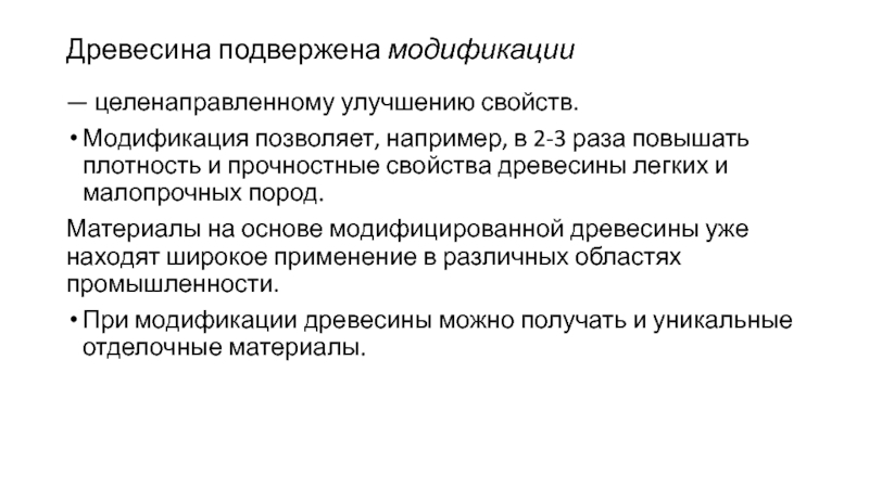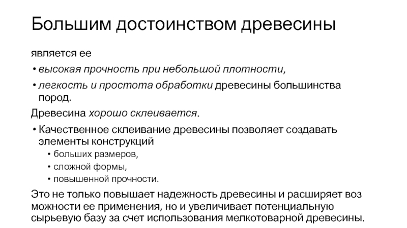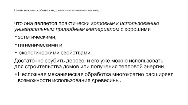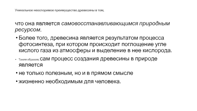 Слайд 13Уникальное неоспоримое преимущество древесины в том,