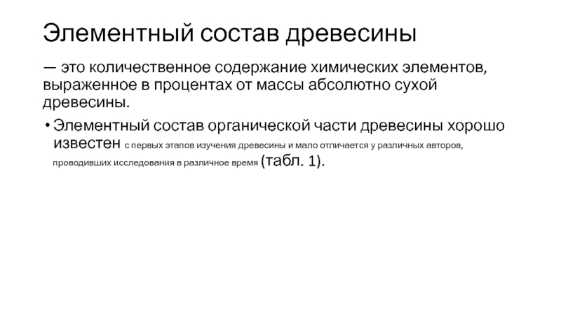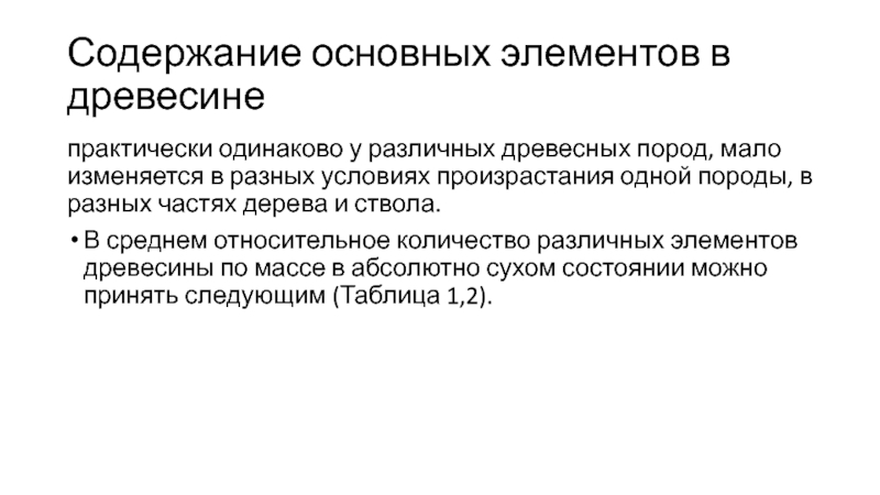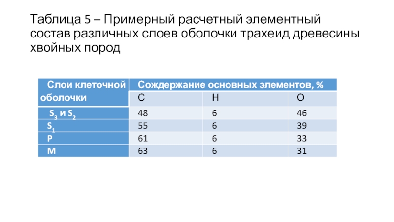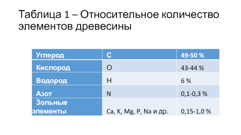 Слайд 55Таблица 1 – Относительное количество элементов древесины