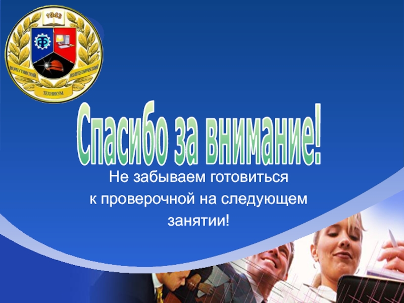 Не забываем готовитьсяк проверочной на следующемзанятии!Спасибо за внимание!