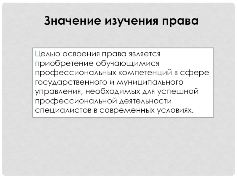 Целью освоения права является приобретение обучающимися профессиональных компетенций