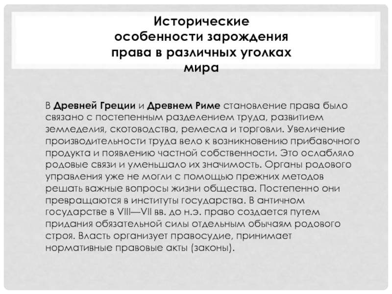 Слайд 25Исторические особенности зарождения права в различных уголках мира