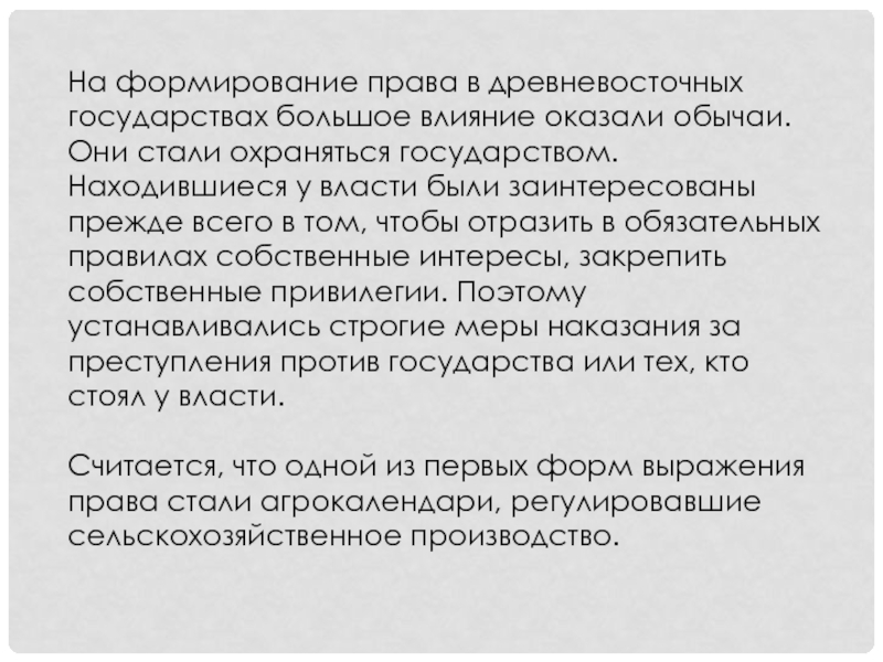 Слайд 28На формирование права в древневосточных государствах большое влияние оказали обычаи.